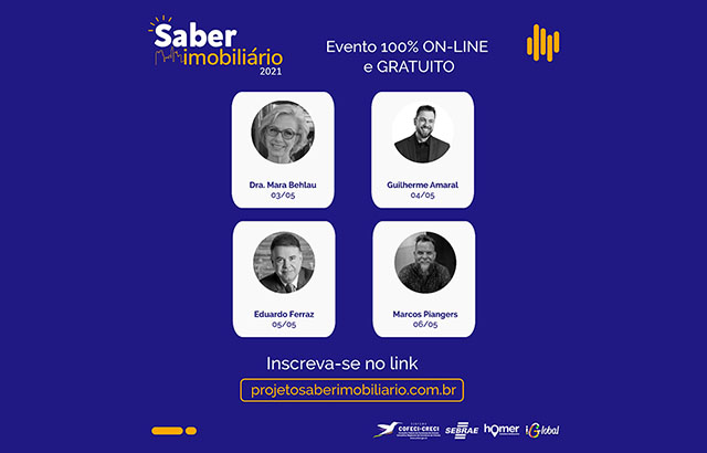 Diante do resultado positivo da edição promovida no ano anterior, o Sistema Cofeci/Creci promoverá o Saber Imobiliário 2021, entre os dias 03 e 06 de maio, das 19h30m às 21h30m. O evento realizado, em parceria com o Sebrae, Homer e I Global, irá abordar sobre o tema Comunicação no Empreendedorismo Imobiliário. A iniciativa gratuita e […]