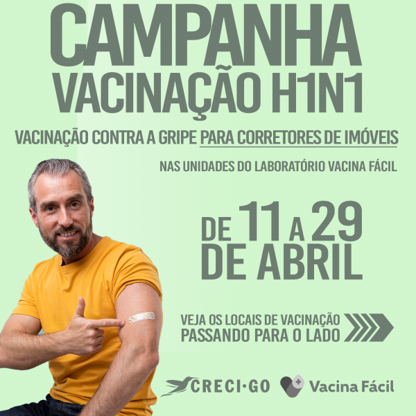 Em parceria com o laboratório Vacina Fácil, o Creci de Goiás promove mais uma edição da campanha de vacinação contra gripe para corretores de imóveis na Grande Goiânia. Entre os dias 11 e 29 de abril, os profissionais que apresentarem a carteira em uma das unidades do laboratório parceiro terão condições diferenciadas no pagamento da […]