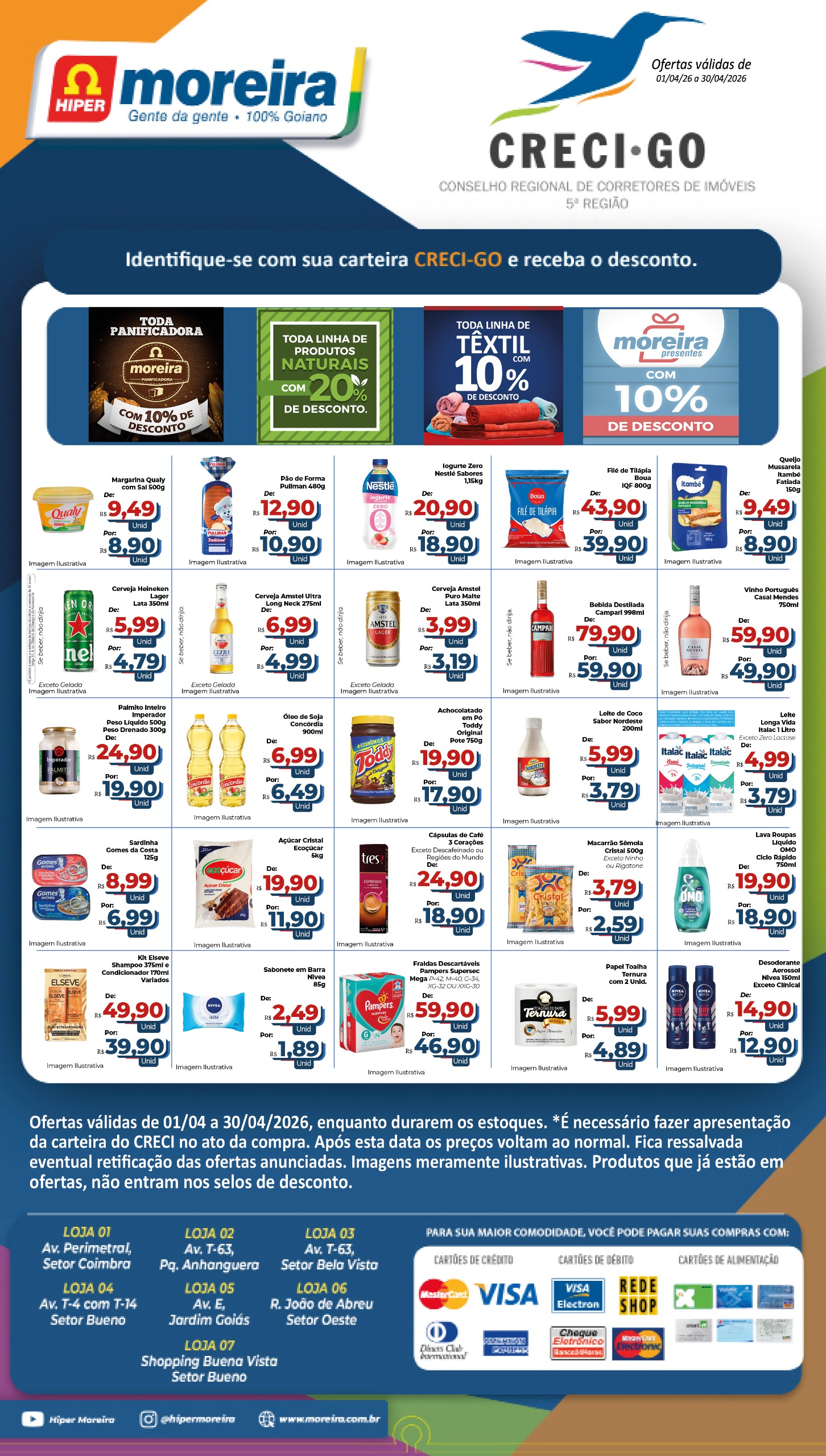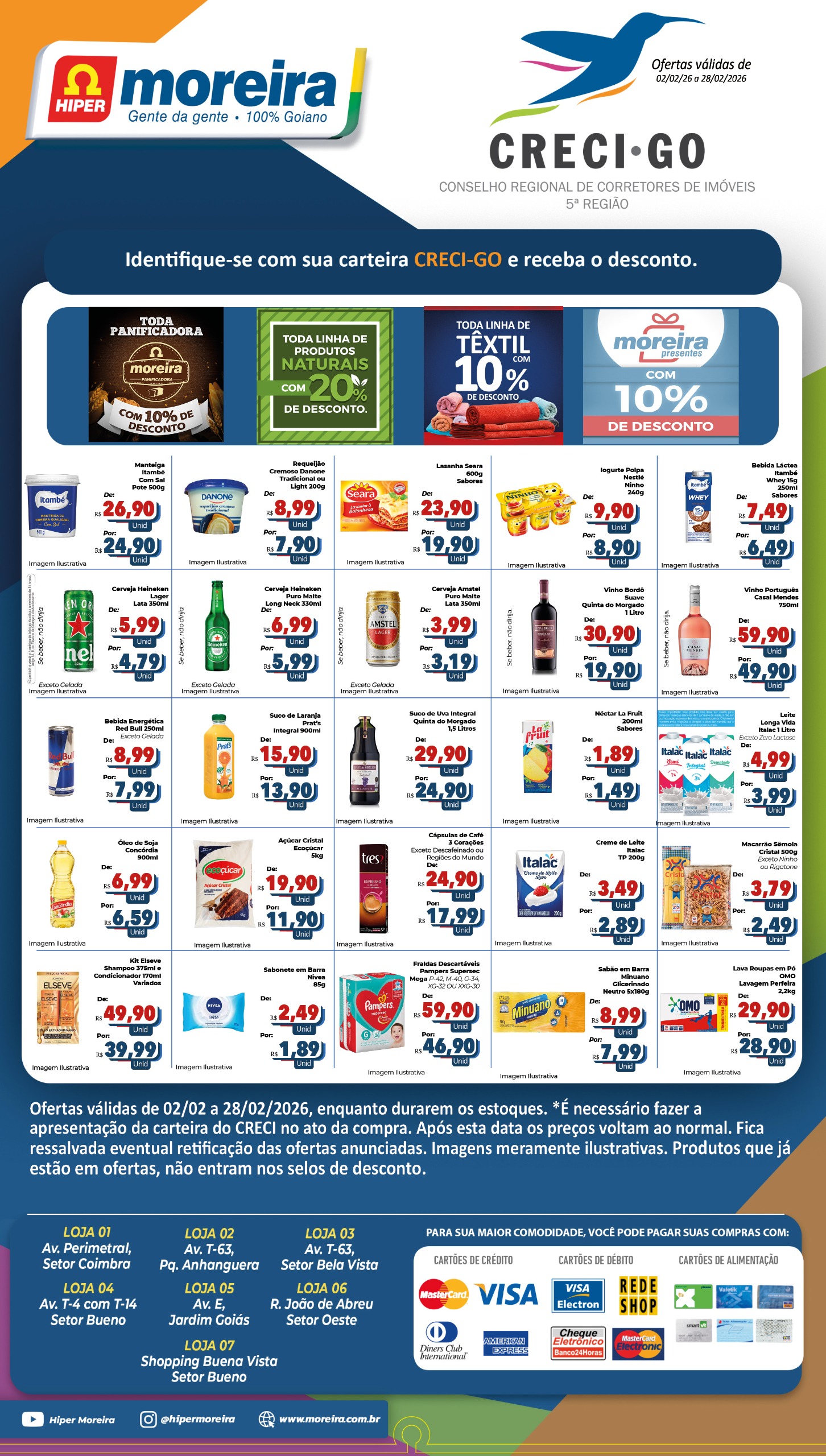 Descontos exclusivos em produtos comercializados e selecionados pelo Supermercado Moreira, em qualquer de suas lojas.